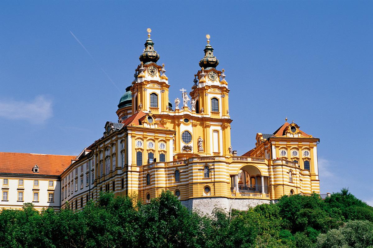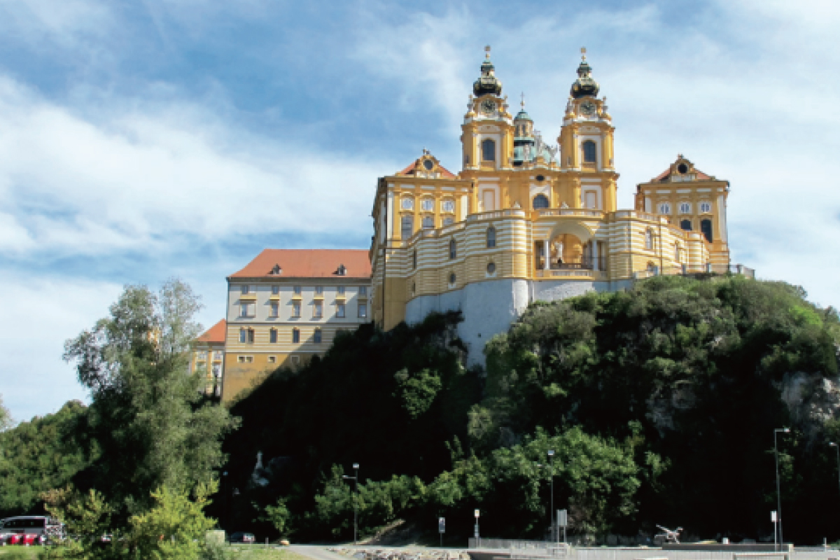 今早您的河輪將抵達梅爾克,造訪雄踞於多瑙河畔的梅爾克修道院,這座建於 11 世紀的本篤會修道院,是聯合國教科文組織列名的世界遺產。修道院至今仍在運作,以其華麗的巴洛克建築、宏偉的圖書館與悠久的歷史聞名。隨後,您將展開沿瓦豪河谷的航行,沿途可見滿布葡萄園的山丘與層層梯田,一幅如畫美景展開在多瑙河兩岸。