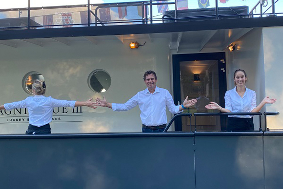 上層甲板設有九間雙人客艙(10 平方公尺)和一間大型套房(13 平方米),所有客房均配有兩張床,(200 x 160 公分 )。都設有「法式陽台」(落地滑動玻璃門)。