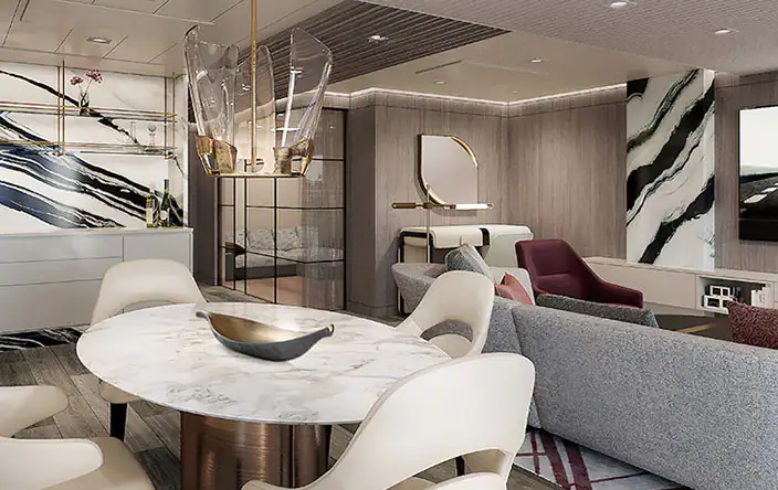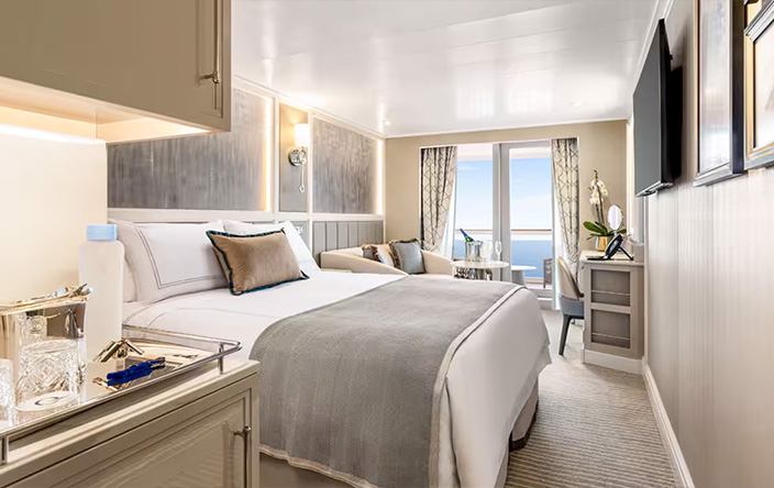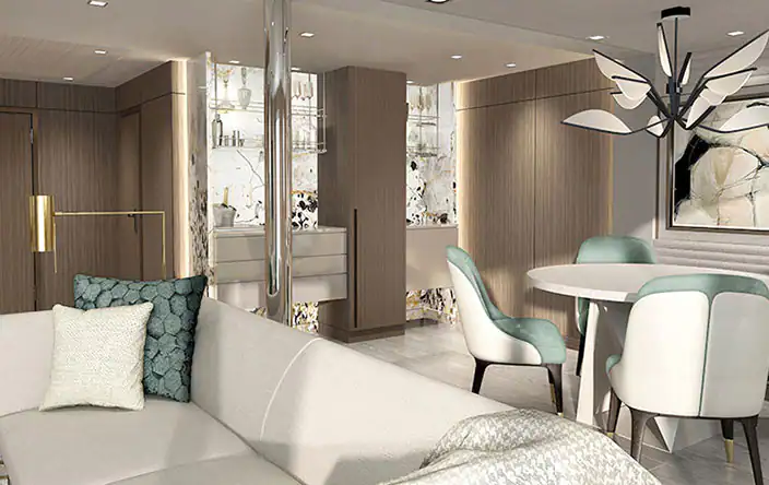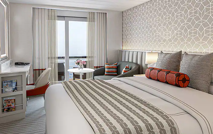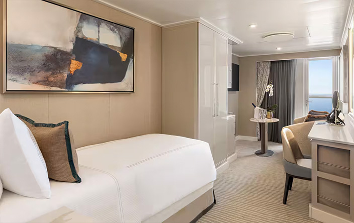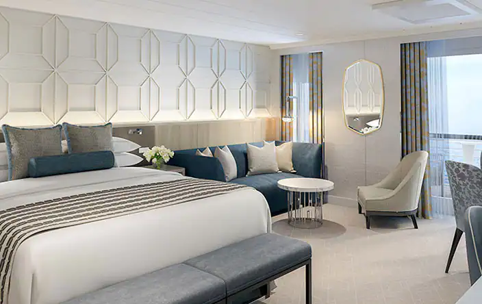 Vista 透過全陽台住宿設定了舒適性和住宅式豪華的新標準。所有客艙和套房均設有佈置精美的浴室,配有超大淋浴間、大型梳妝台和充足的儲物空間。作為品牌的首創,Vista 推出專為單身旅客設計的陽台客艙。 每間客艙和套房都擁有舒緩的色調,並配有多層豪華家具、裝飾和藝術品,是一個溫馨的家外之家。