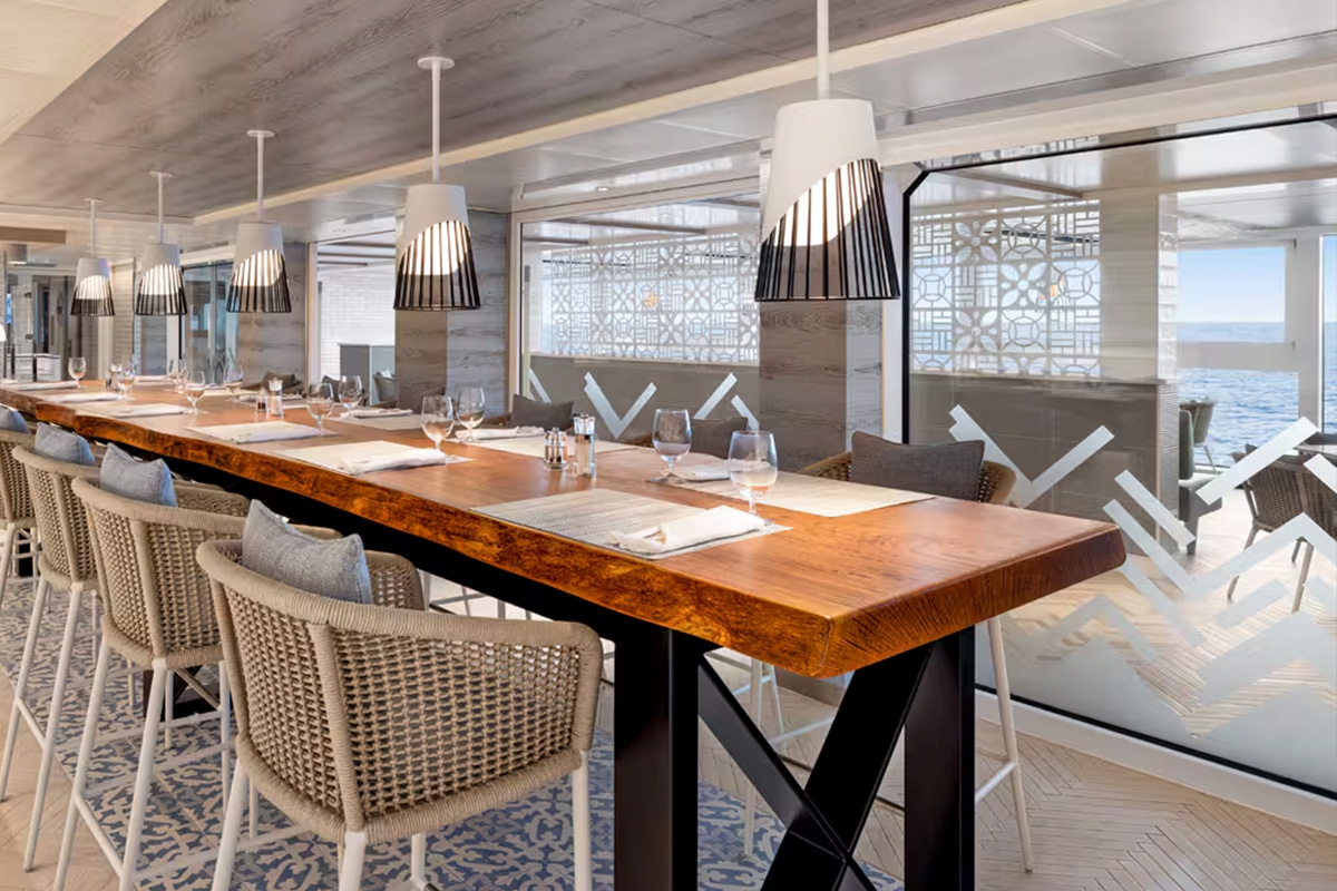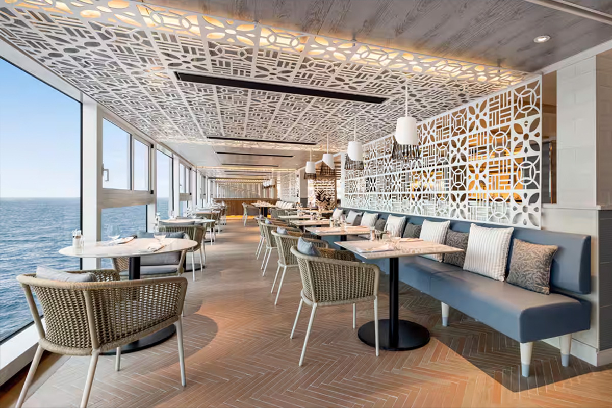 大洋郵輪以精緻的美食著稱,Vista將繼續為賓客呈獻海上頂級佳餚 (The Finest Cuisine at Sea®),船上共設有八間餐廳,其中四間屬全新推出,尤以「Ember」與「Aquamar Kitchen」別具代表性,分別提供傳統經典美饌與創意美式料理,以及健康輕盈、盡情大快朵頤也不會感到內疚的美食;義式餐廳「Toscana」以托斯卡尼特色美食享負盛名,靈感源於義大利主廚的家傳食譜,並有專業品油師提供橄欖油配餐服務;「Red Ginger」主打亞洲佳餚,稍解味蕾上思鄉之情的同時,還能品嘗清酒及多款亞洲風味雞尾酒。
