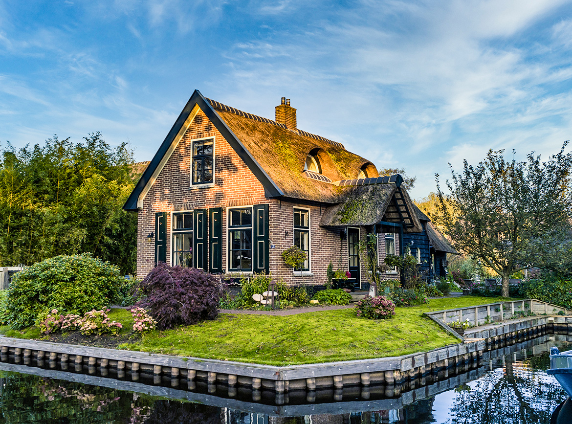 今日前往羊角村(又稱荷蘭的威尼斯,或綠色威尼斯),特別安排★乘坐小艇遊覽蜿蜒運河、小橋、蘆葦屋頂傳統房舍,倒影在水面,構成一幅寧靜溫馨又美麗的綠色水鄉,船夫精采解說各幢房子特色及歷史,猶如步入時光隧道