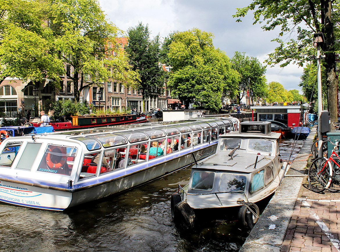 隨後返回市區;參觀●國立博物館,欣賞林布蘭名聞遐爾的名畫『夜巡』,爾後搭乘★玻璃船巡遊於大小運河,兩岸古趣盎然的建築盡收眼底,並參觀●鑽石切割工廠及著名的▲水霸廣場、舊皇宮等。