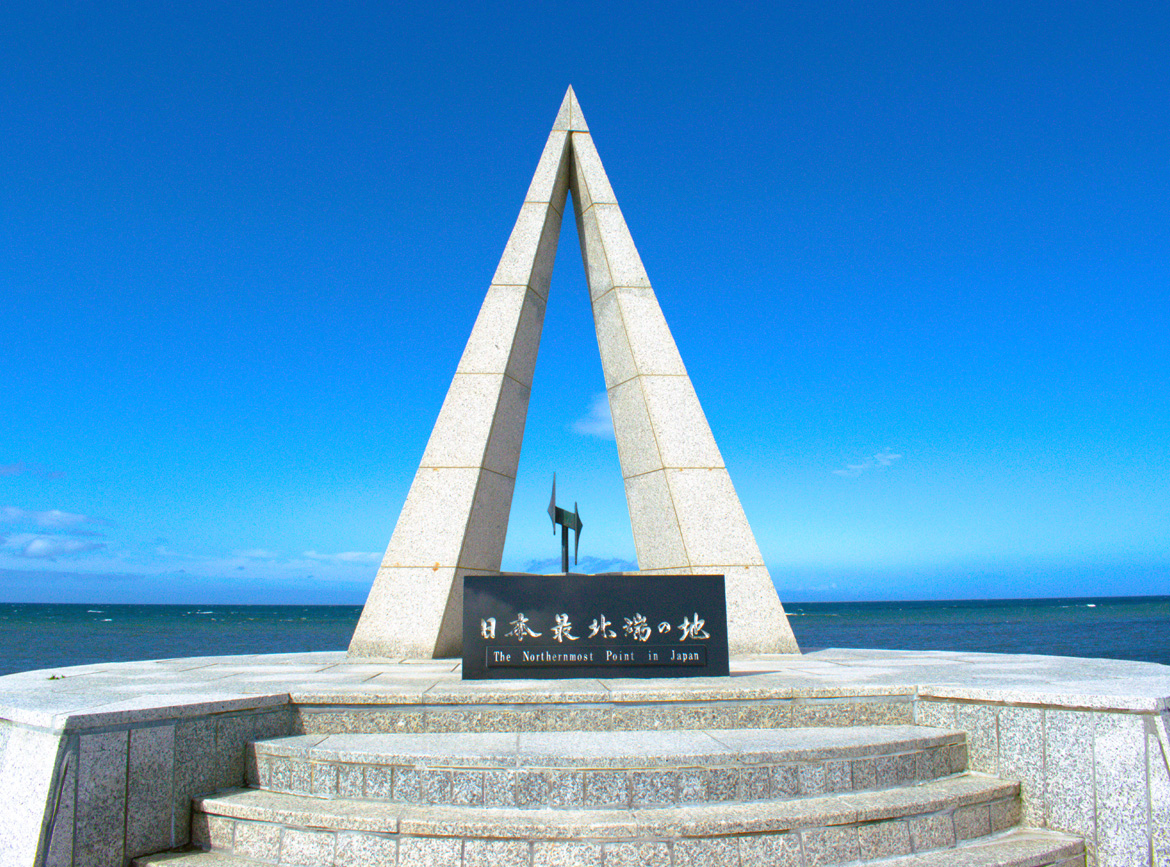 ●【宗谷岬紀念碑】是宗谷岬地區最受重視與歡迎的地標,而建立在海岬最北端一小塊填海陸地上的“日本最北端之地”紀念碑。以北海道道章的“北極星”之一部分星芒為主題,紀念碑是一個位在圓形平臺上、總高4.53米的三角形建築物,其精確位置為北緯45度31分22秒,東經141度56分11秒,在天氣晴朗時可以由紀念碑這頭遙望到俄國「薩哈林州」的陸地。