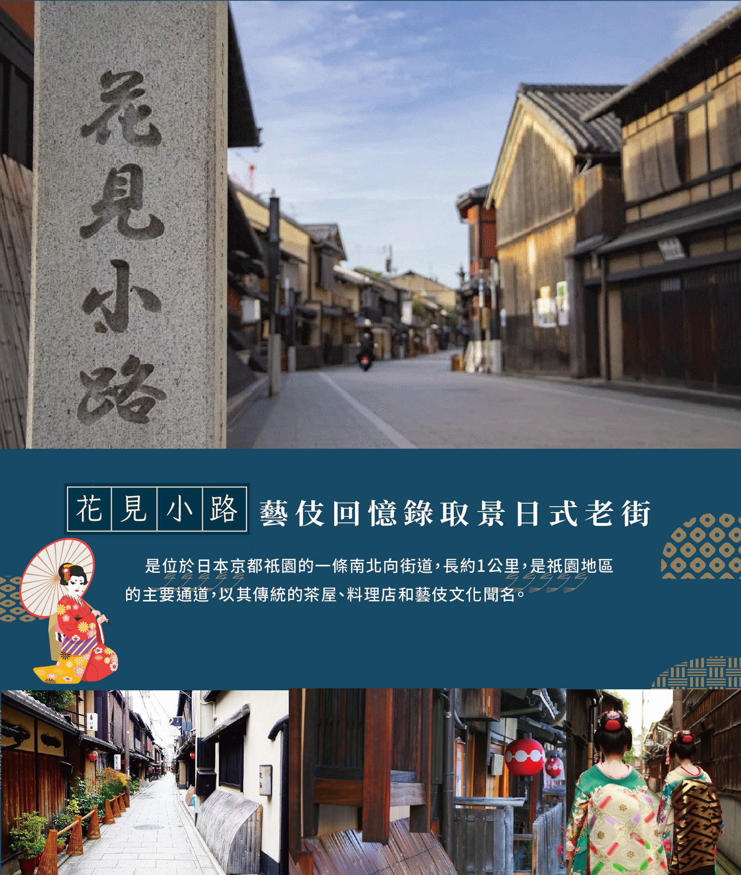 【花見小路】是位於日本京都祇園的一條南北向街道,長約1公里,是祇園地區的主要通道,以其傳統的茶屋、料理店和藝伎文化聞名。