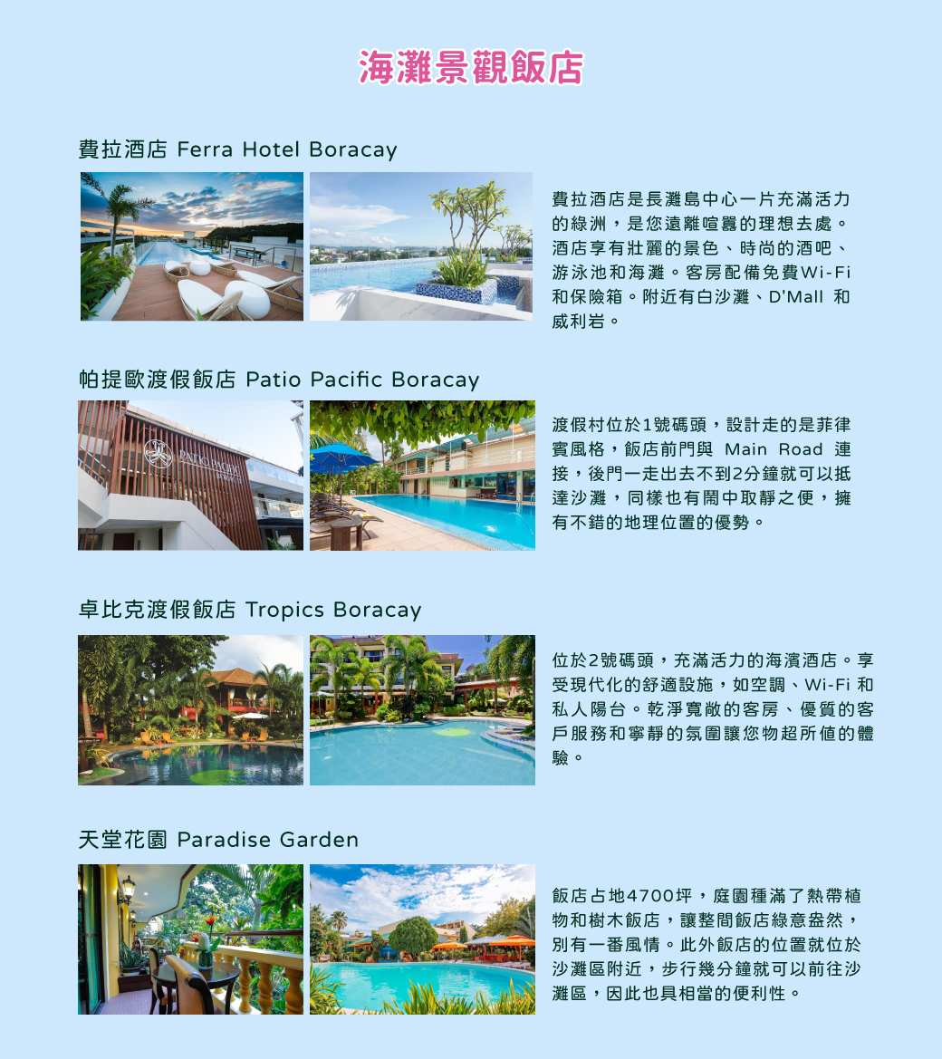 11. 長灘島飯店與餐廳目前實施全環保措施,不提供塑膠袋、塑膠吸管,敬請自行準備。
