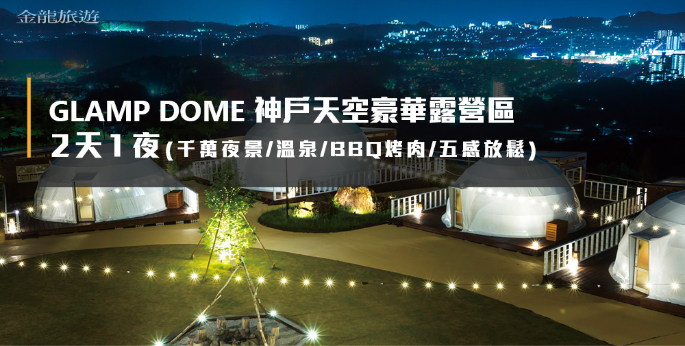 神戶是個和洋文化兼容並蓄、擁有1000萬夜景的港都城市。位在距離三宮站約20分的「GLAMP DOME 神戶天空」是神戶市內唯一的豪華露營基地,2020年8月開幕,擁有絕佳眺望和露營場稀有的天然溫泉,以及來自神戶在地的山珍海味BBQ饗宴,五感體驗再升級!