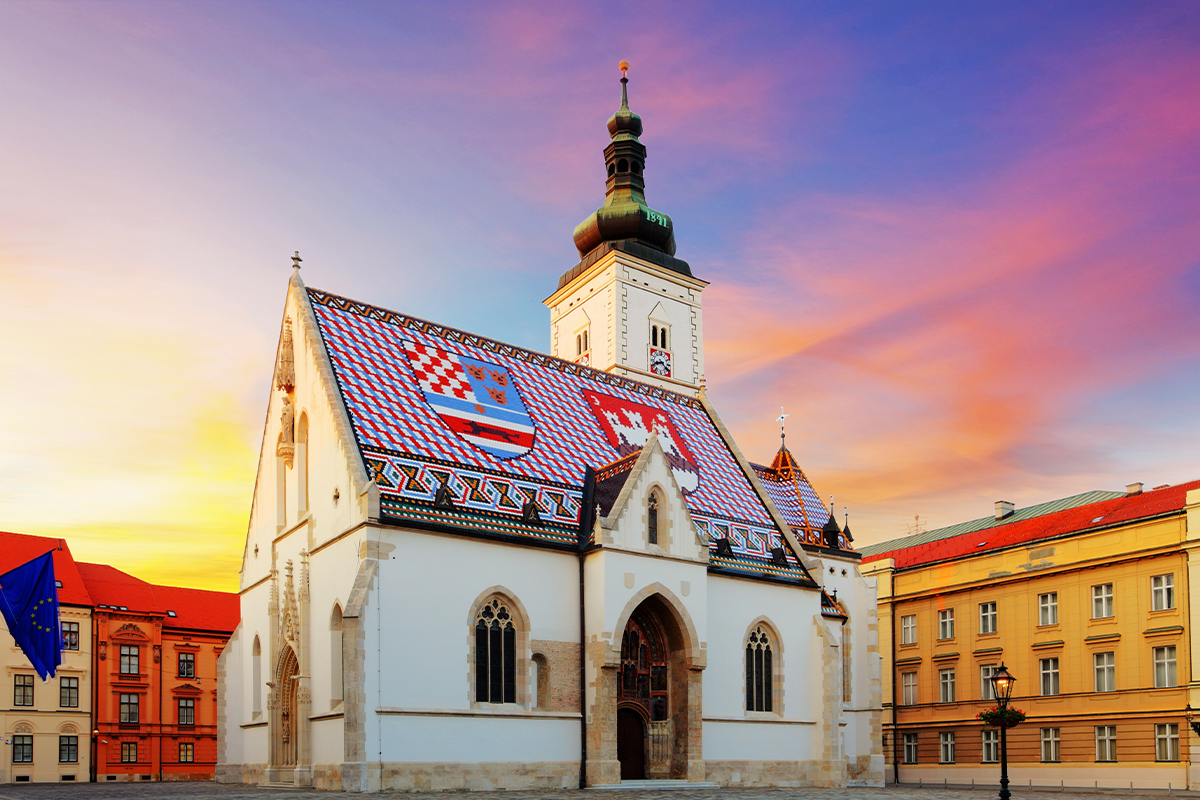 克羅埃西亞首都-札格雷布,從地勢較高的卡普托區大教堂開始展開市區觀光,它是克國最大型的宗教建築,從城市的各個角落,都能輕易地看到兩座高聳的尖塔。不過現在這座新歌德式的教堂建築是1880年大地震後重建的,內部十分富麗堂皇,裡頭保存了11世紀以來重要的古物。穿過露天市集來到由聖母瑪莉亞守護著的石門,裡頭供奉著一幅聖母子畫像。據說1731年的一場大火,燒毀了舊城區的建築,只有貼著聖母瑪莉亞畫像的石門絲毫未損,此後香火鼎盛。穿過石門後,即可抵達以美麗的馬賽克拼貼畫為屋頂,聞名於世的聖馬可教堂,教堂在舊城精華地帶中心,佔地面積並不大,但遠望去一片紅瓦頂的東歐城市中,教堂特色的屋頂使人留下深刻的印象。